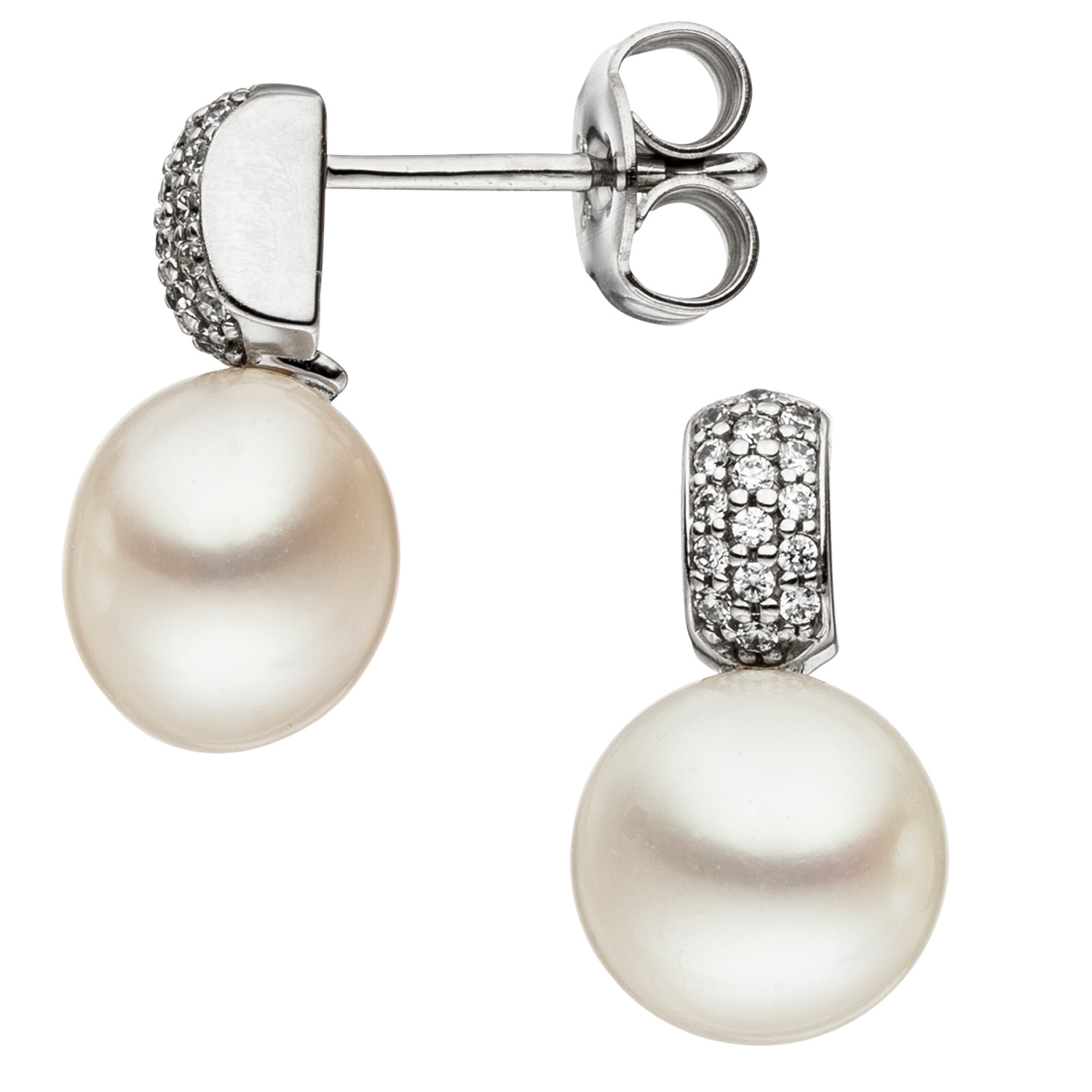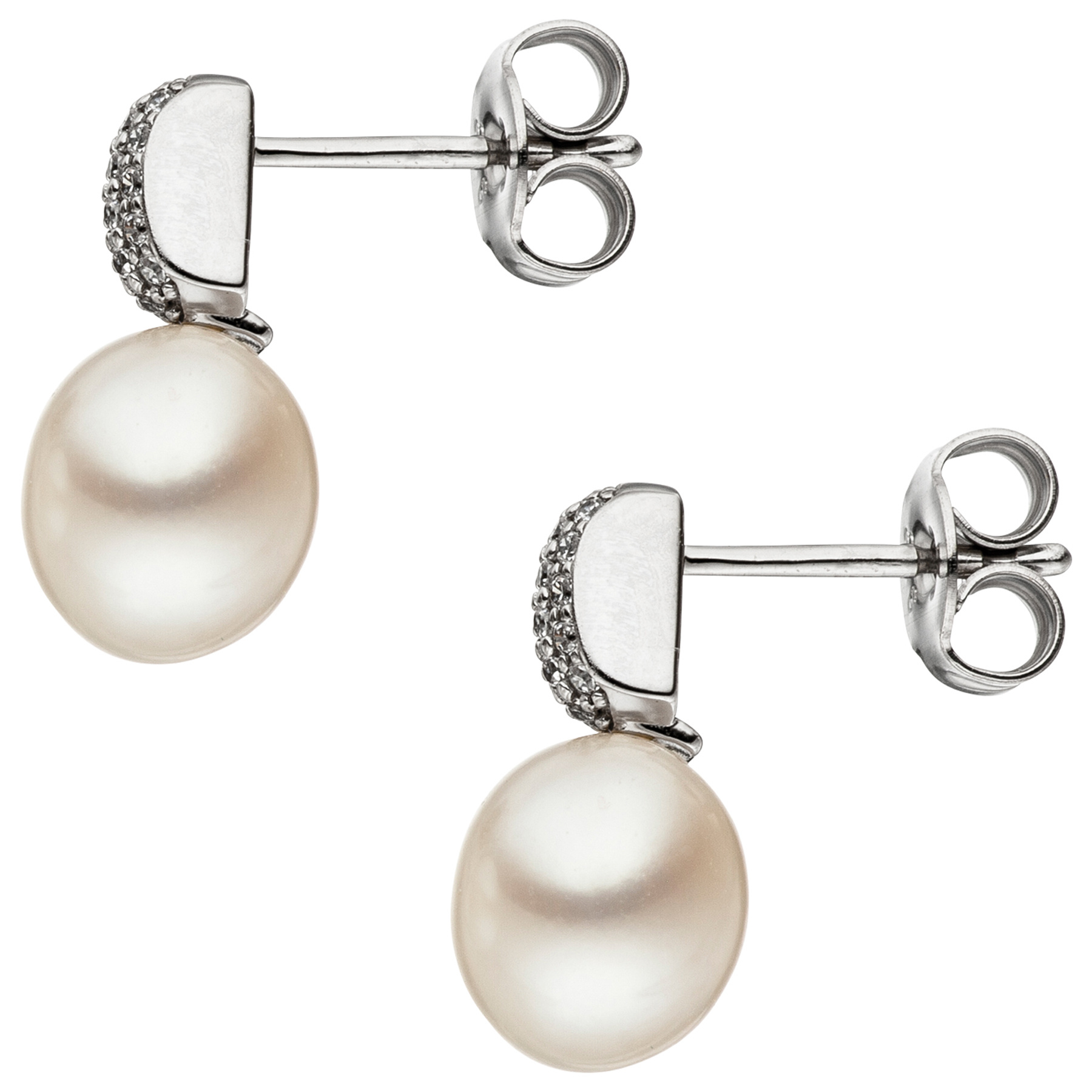 1 Paar Ohrstecker aus 8 Karat (333) Weißgold, mit 2 Süßwasser-Zuchtperlen