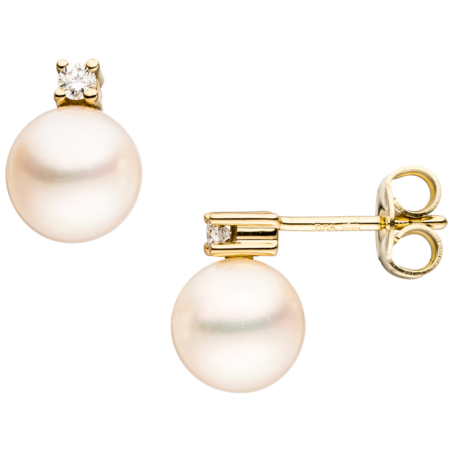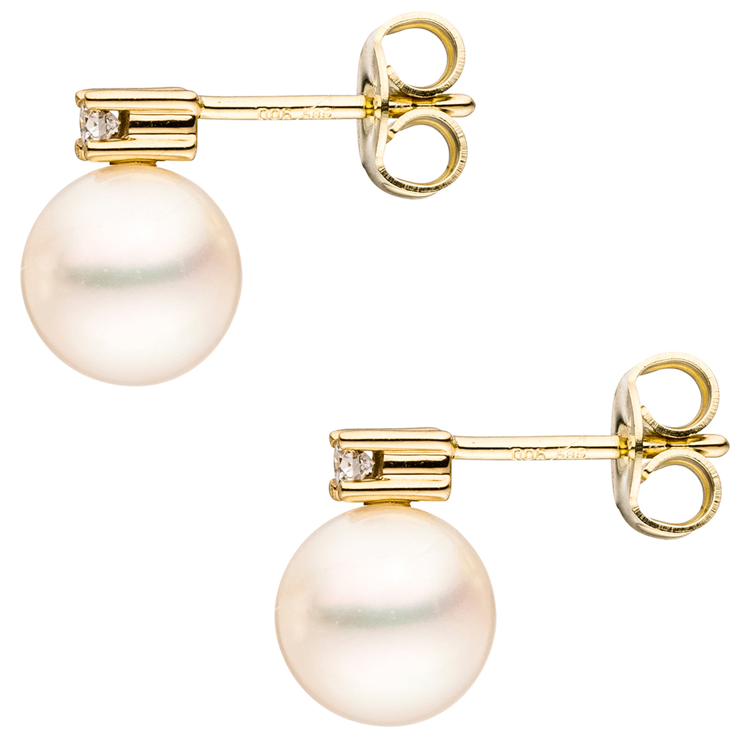 1 Paar Ohrstecker aus 14 Karat (585) Gelbgold, mit 2 Süßwasser-Zuchtperlen und