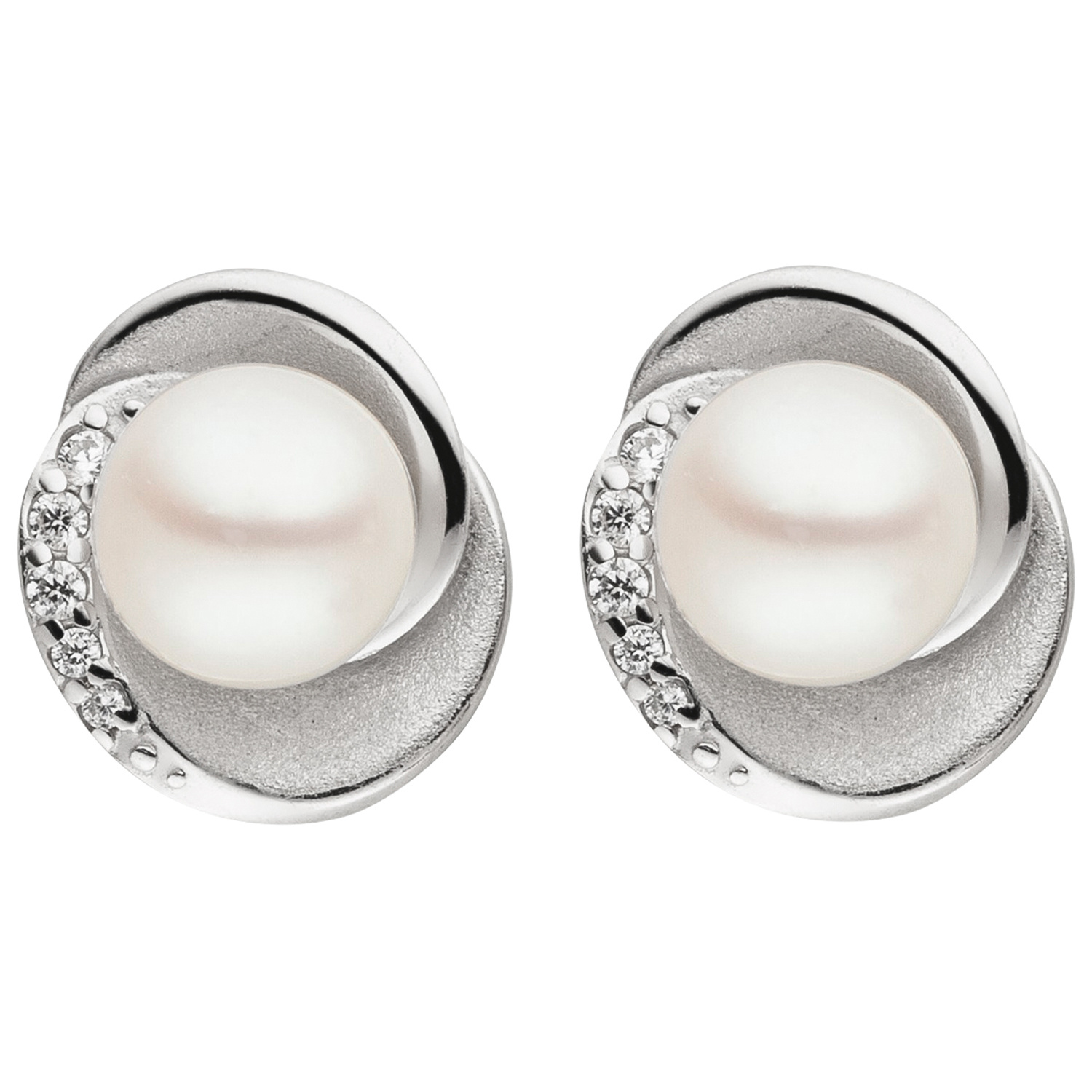 1 Paar Ohrstecker aus 925 Sterlingsilber, rhodiniert und teilmattiert,