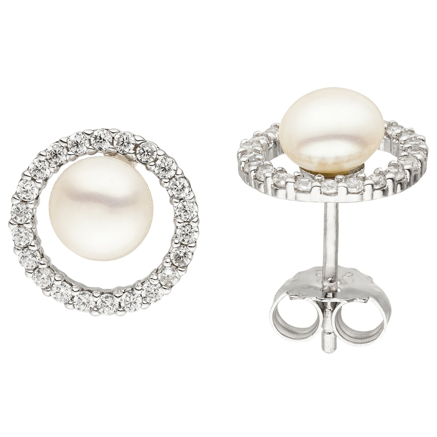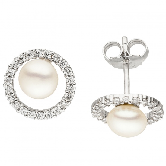 1 Paar Ohrstecker aus 925 Sterlingsilber, rhodiniert, mit 2 Süßwasser-Zuchtperlen