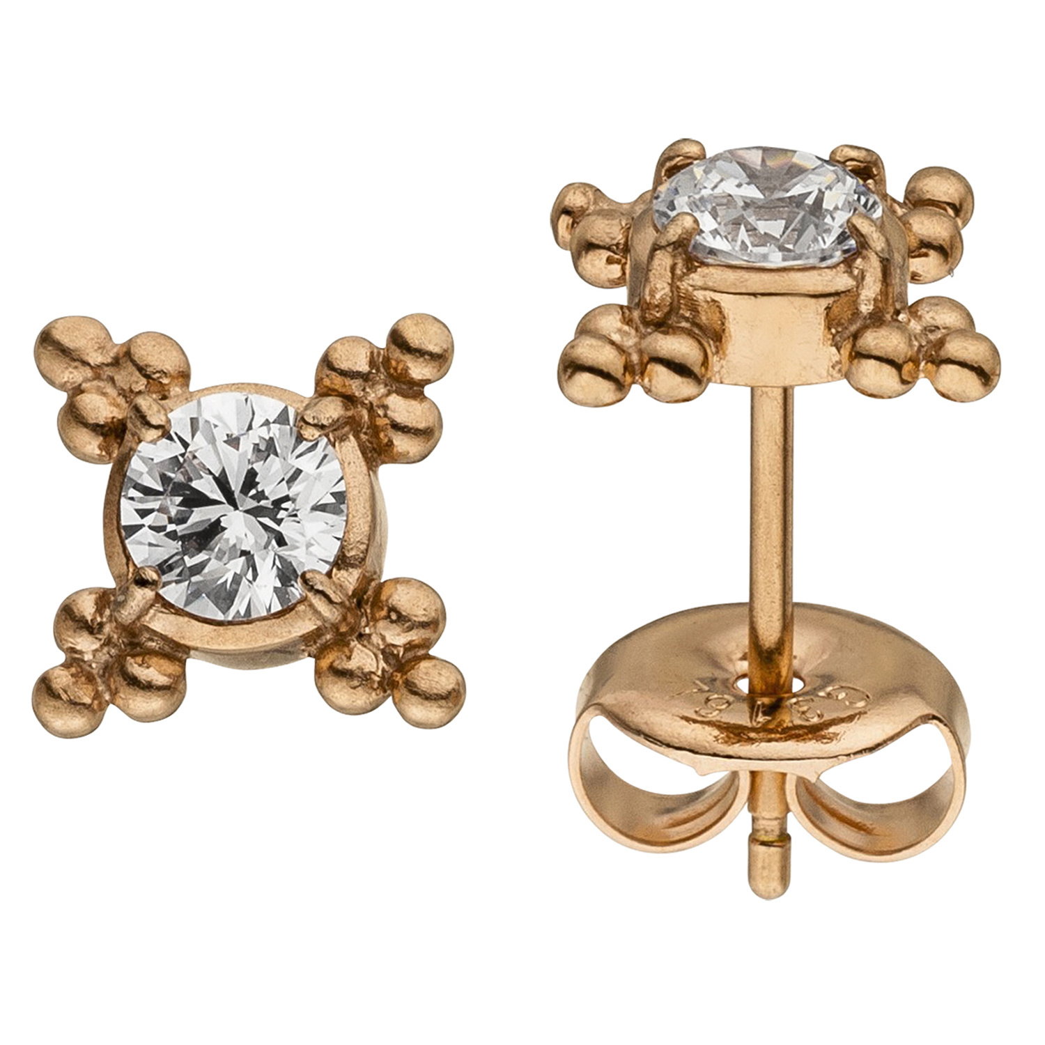 Ohrstecker Edelstahl 2 Zirkonia rotgoldfarben beschichtet Ohrringe