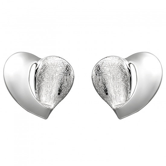 1 Paar Ohrstecker "Herz" aus 925 Sterlingsilber, rhodiniert und teileismatt,