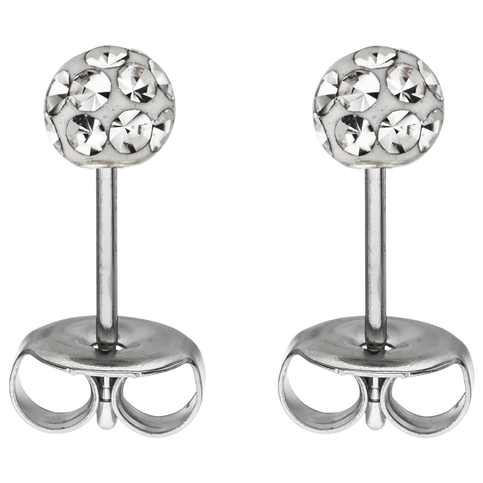 Ohrstecker Kugel Edelstahl mit Kristallsteinen Ohrringe Kugelohrstecker