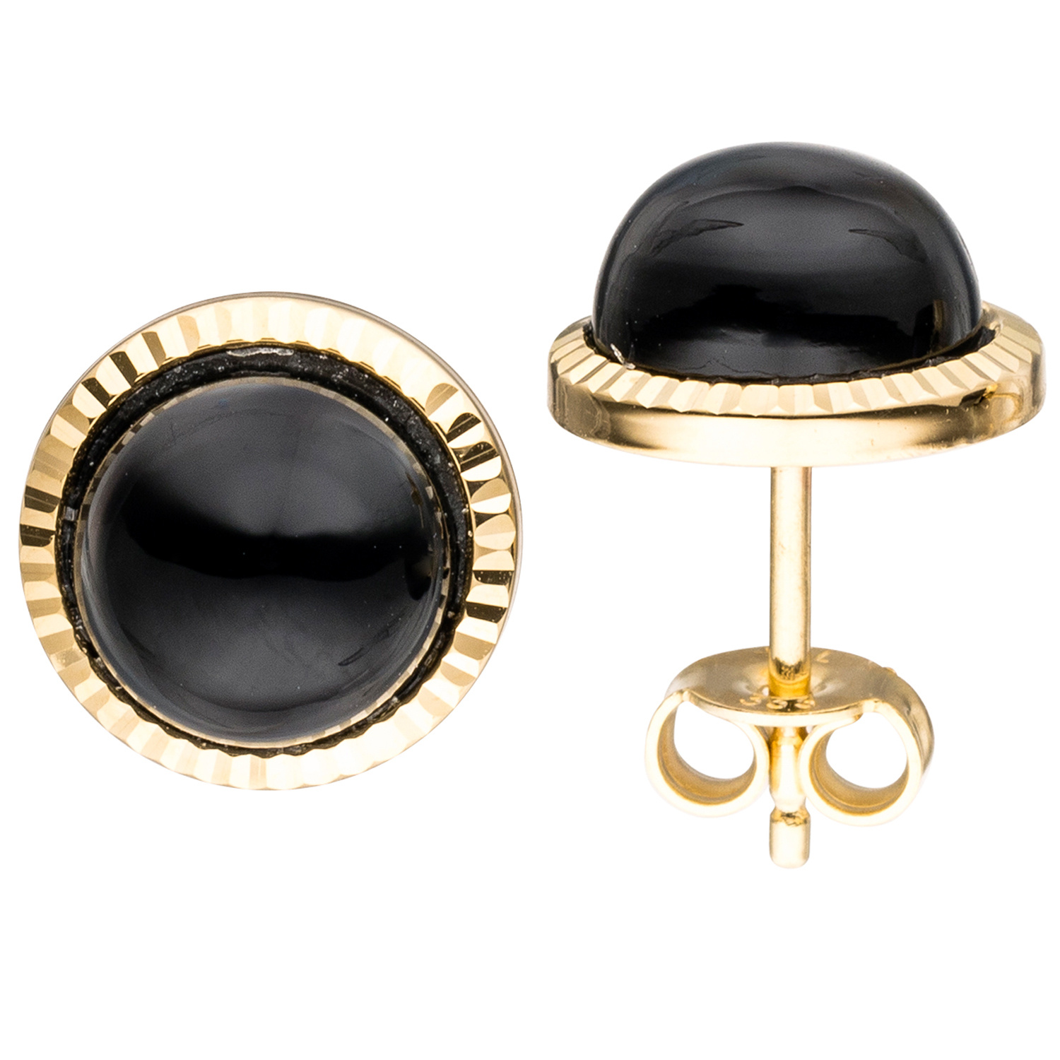 Ohrstecker rund 333 Gold Gelbgold 2 Onyxe schwarz Ohrringe Goldohrstecker