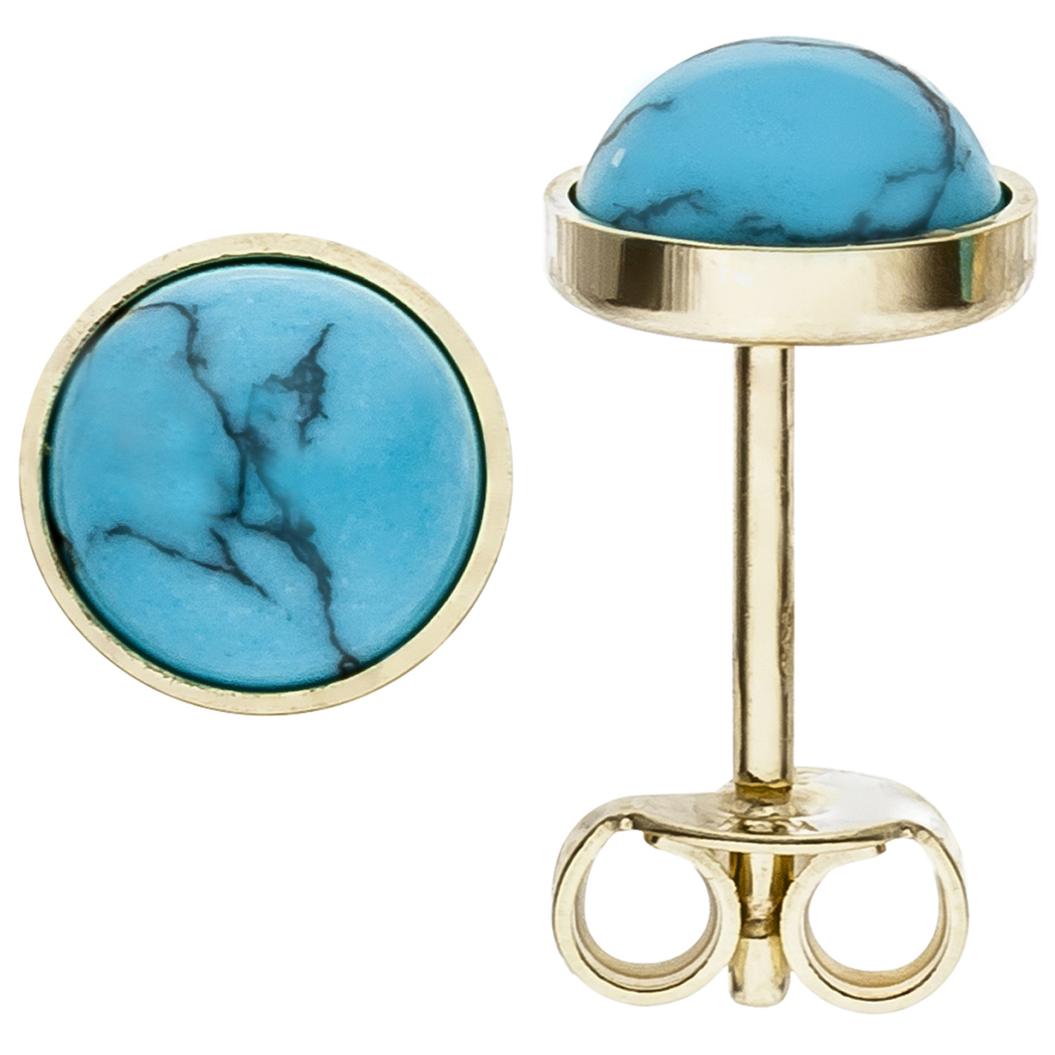 Ohrstecker rund 333 Gold Gelbgold 2 Türkise Ohrringe Goldohrstecker