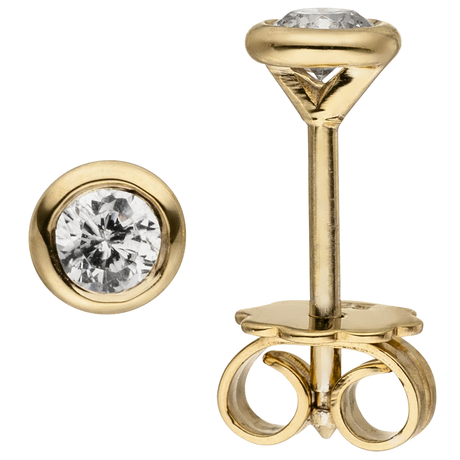 1 Paar Ohrstecker aus 14 Karat (585) Gelbgold mit 2 Diamant-Brillanten, 0,14 ct.,