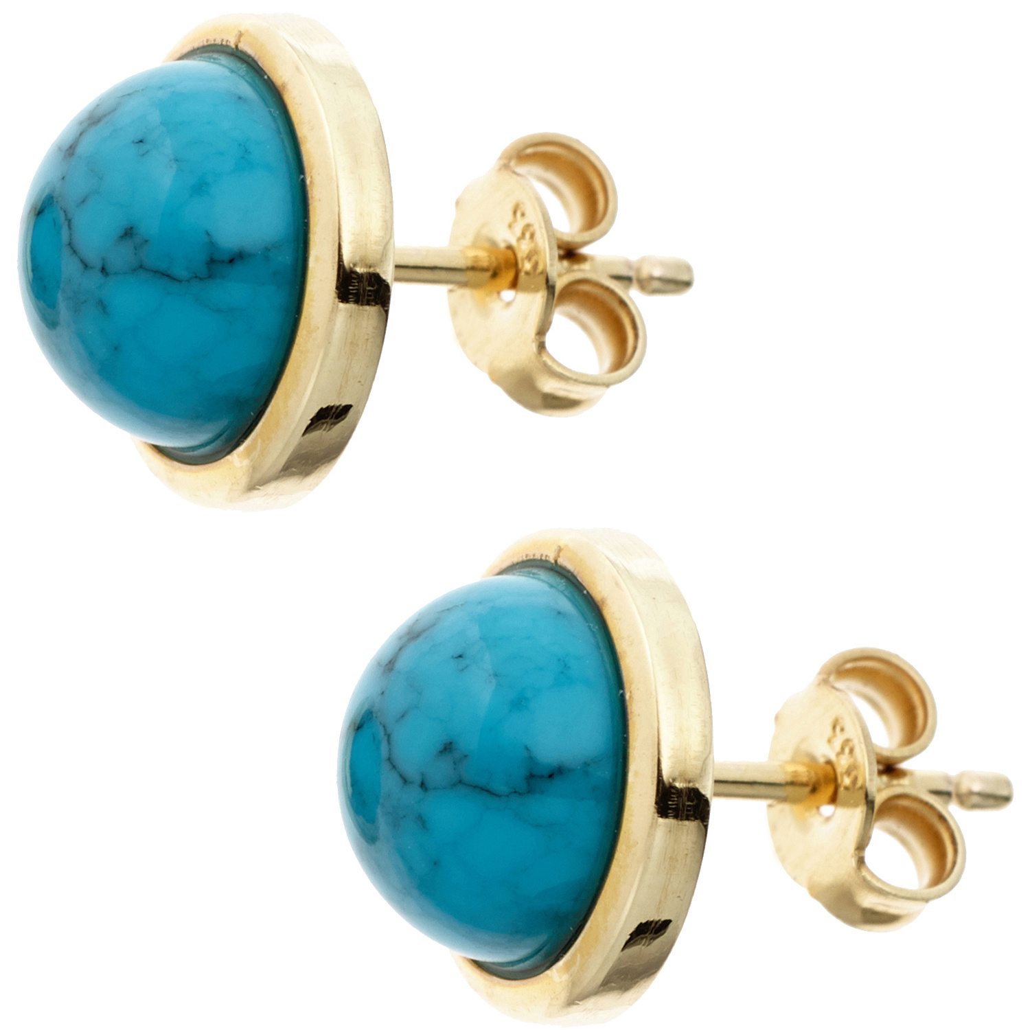 Mobile Preview: Ohrstecker rund 585 Gold Gelbgold 2 Türkise türkis Ohrringe Goldohrstecker