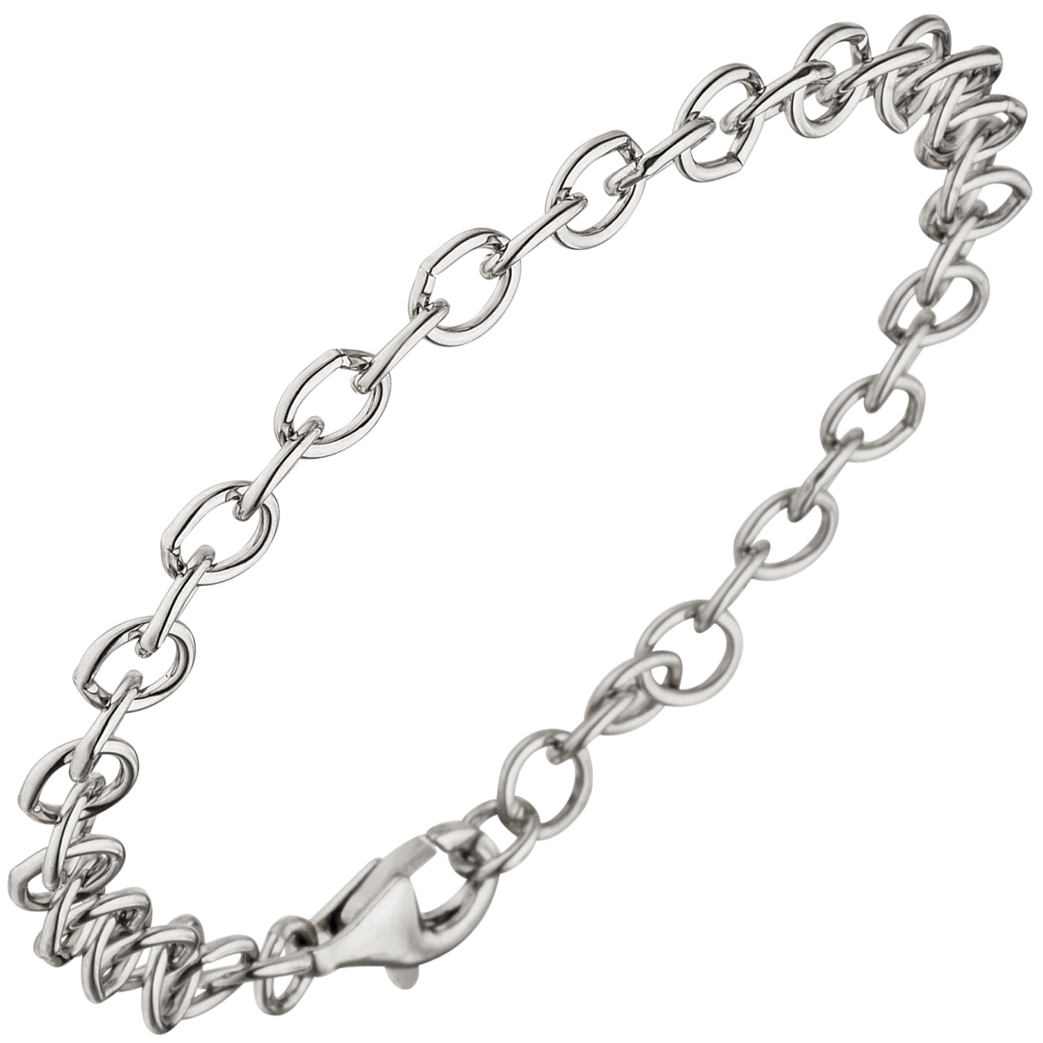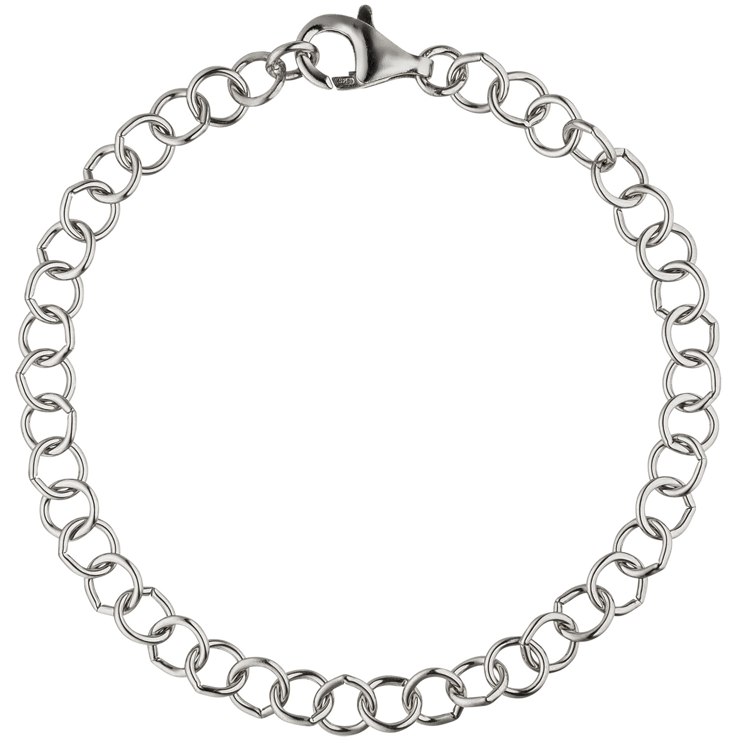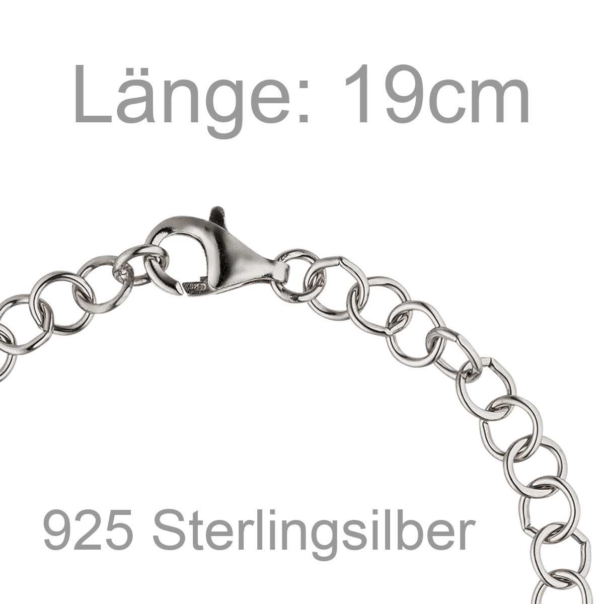 Rundankerarmband aus 925 Sterlingsilber, rhodiniert, mit Karabinerverschluss, Länge ca. 19 cm,
