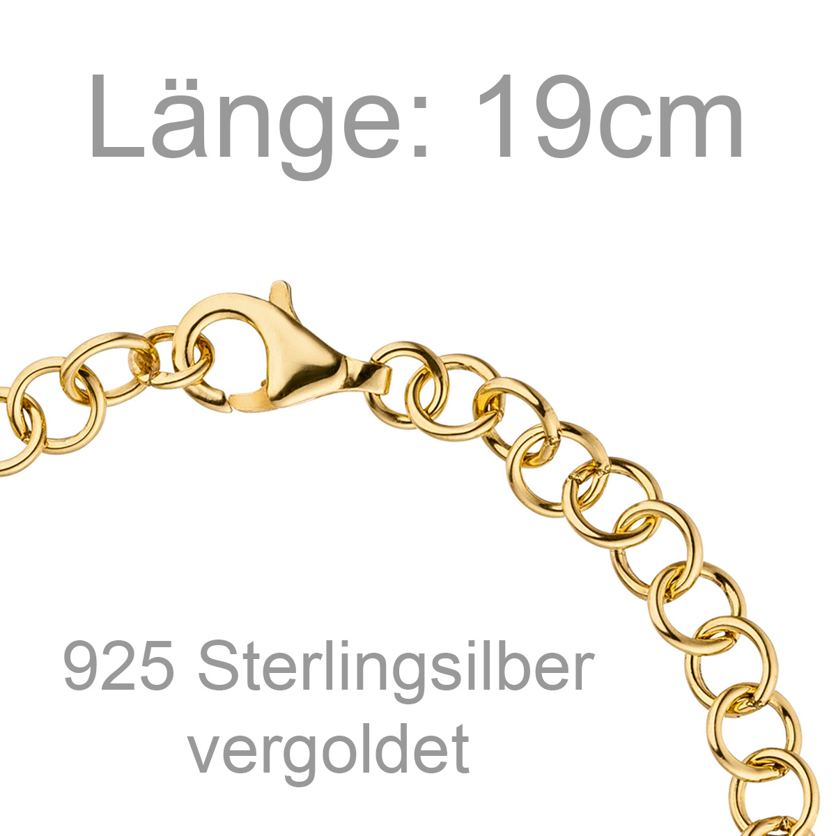 Rundankerarmband aus 925 Sterlingsilber, vergoldet, mit Karabinerverschluss,